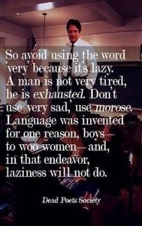 Yet another excellent quote. However, let’s apply this to the rest of life. “Avoid using the word very because it’s lazy. A man in not very tired he is exhausted. Don’t use very sad, use morose. Language was invented for one reason (insert your reason here) and in that endeavor laziness will not do.”